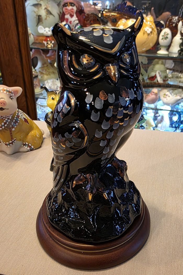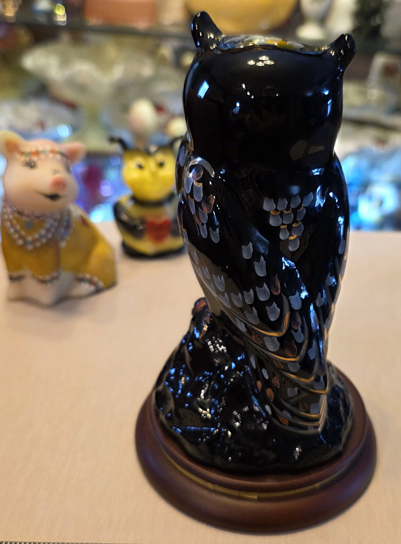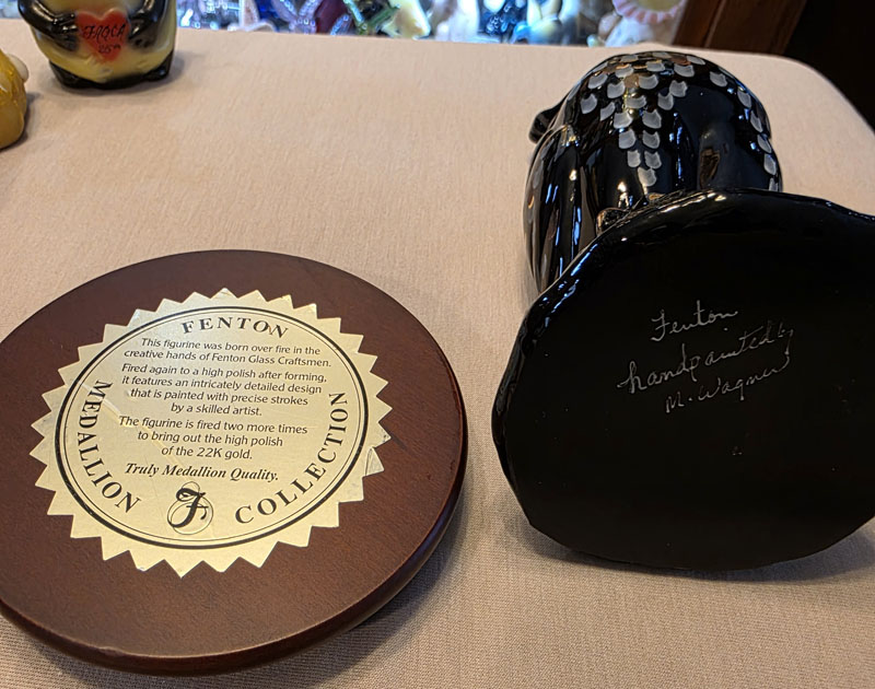Fenton’s Medallion Collection Hand Painted Black Glass Owl
